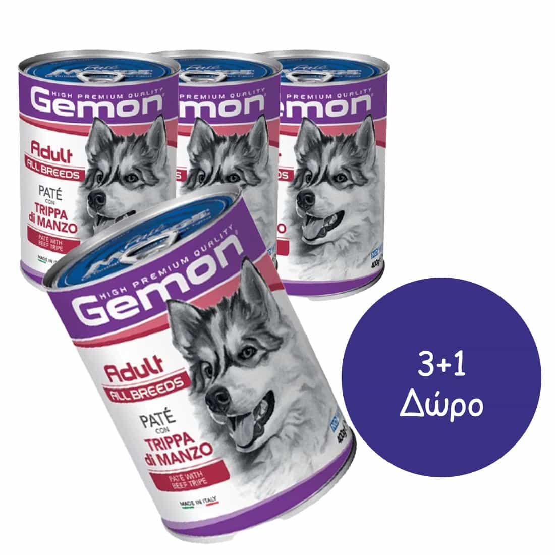 3+1 Δώρο Gemon Dog Pate Adult Beef tripe 400g