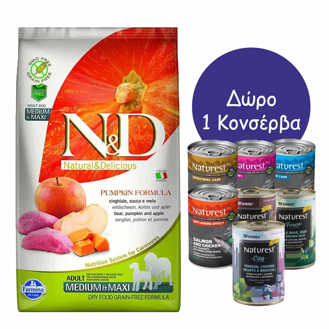 Ετικέτες: ND Dog Pumpkin Boar Adult Med / Max 2.5KG + Δώρο 1 Κονσέρβα Naturest 400gr, ΞΗΡΑ ΤΡΟΦΗ ΣΚΥΛΟΥ
