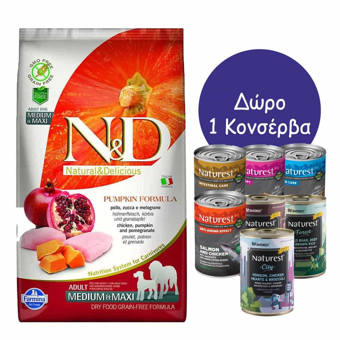 ND Dog Pumpkin Chicken Adult Med / Max 2.5KG + Δώρο 1 Κονσέρβα Naturest 400gr
