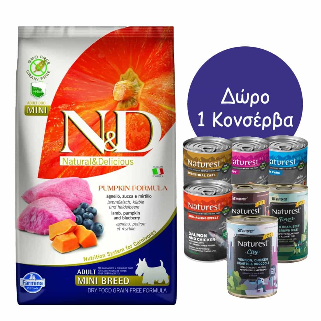 ND Dog Pumpkin Lamb Adult Mini 2.5KG + Δώρο 1 Κονσέρβα Naturest 400gr