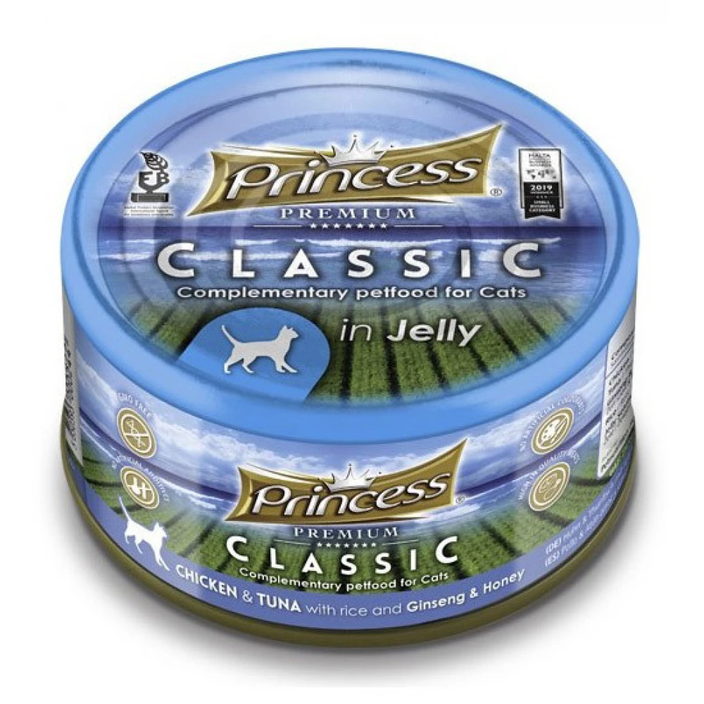 Υγρή Τροφή, Κονσέρβα Γάτας Princess Premium Classic Chicken & Tuna Rice με Ginseng & Honey in Jelly 170g in Jelly.