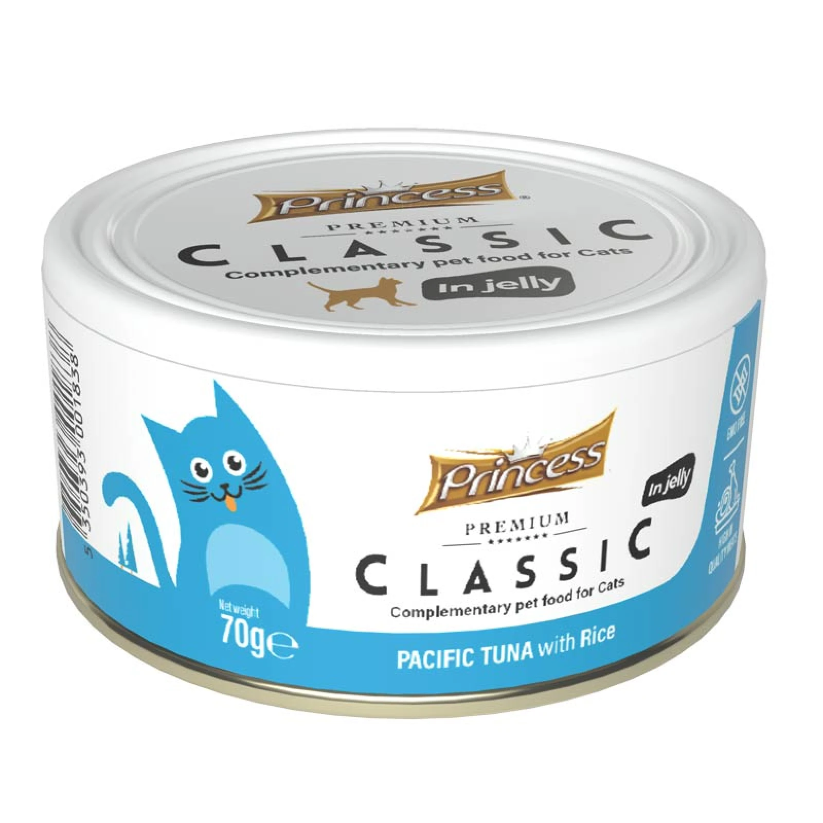 Η σειρά Princess Classic – Pacific Tuna with Rice αποτελεί μια premium υγρή τροφή για γάτες, με υψηλή περιεκτικότητα σε τόνo Ειρηνικού και ρύζι, ώστε να προσφέρει πλήρη και ισορροπημένη διατροφή.